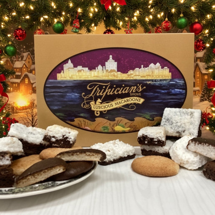 Tripician's Almond or Coconut Macaroons are baked using original recipes dating back to 1910 on the Atlantic City boardwalk. You can choose which kind you prefer or mix them up in a 'Sampler' box. Our macaroons are wrapped two per pack in satin wrap that ensures the chocolate will not release from the confection even in warmer weather. Choose from one, two or three dozen sized gifts boxes that arrive gift-wrapped and with your personalized gift card attached. Please use the text box on the "YOUR CART" page to write your message or include any shipping information.