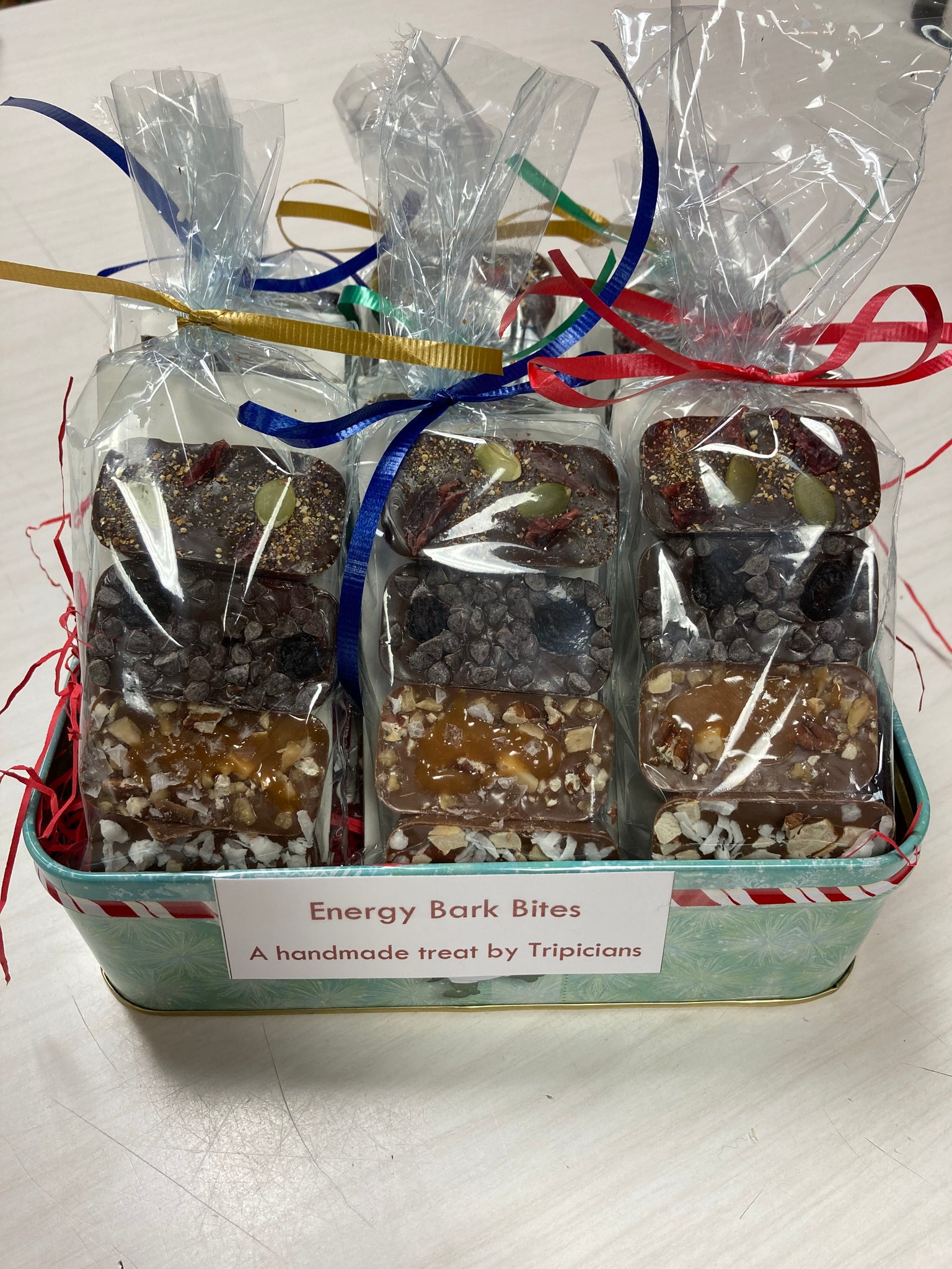 Enjoy a smarter snack with Tripician's Energy Bark Bites, a delicious chocolate treat that energizes you naturally. Each milk or dark chocolate bar is topped with a lively mix of crunchy nuts, chewy dried fruits, and delightful textures that satisfy your cravings. Perfect for a tasty boost anytime you need it—indulgence and energy combined in every bite! The delightful visual appeal makes this an excellent gift, too.